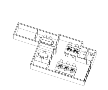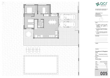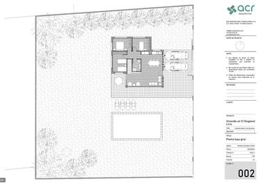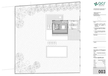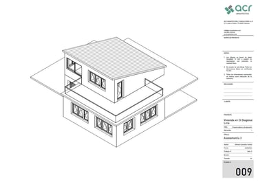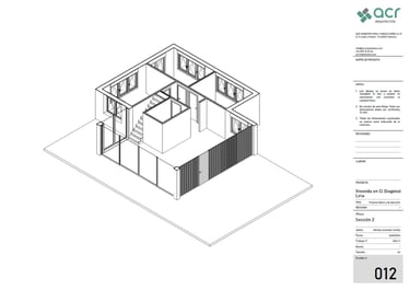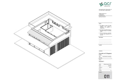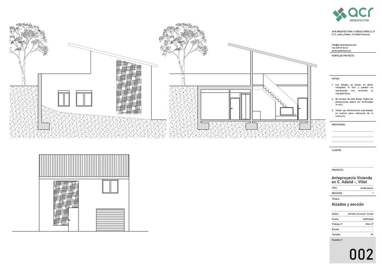 Proyecto para una vivienda de fin de semana en la urbanización Alt Botigueta en Liria. La vivienda se ubica en una parcela plana con una superficie de 1000 m2. La planta surge de la unión de dos rectángulos, reservando el rectángulo sur a la zona social de la vivienda, el norte a las zonas de noche y la intersección entre ambos se destina a espacios servidores, el baño y las escaleras a la planta superior. La envolvente de la zona de día en sus lados sur, este y oeste es completamente abierta, protegida por lamas verticales en el lado este y por un voladizo en sus lados sur y este. Este voladizo ha sido calculado para proteger del sol en verano y permitir el paso de los rayos solares en invierno.